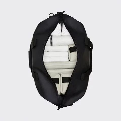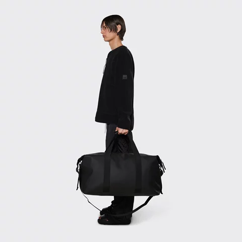 Die Weekend Bag Large ist Rains' Interpretation einer modernen Sport- oder Übernachtungstasche. Diese unverzichtbare Tasche von Rains hat ein einziges Hauptfach, Tragegriffe aus Netzgewebe, einen abnehmbaren Schultergurt und verstellbare Schiebereglerschnallen an den Seiten. Die Weekend Bag Large ist aus dem für Rains typischen wasserdichten, PU-beschichteten Stoff gefertigt. Der wasserdichte Seesack ist mit einem beschichteten Reißverschluss und matten Beschlägen ausgestattet.